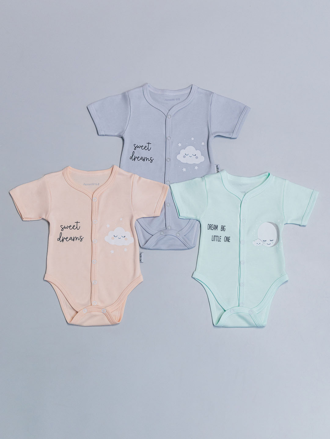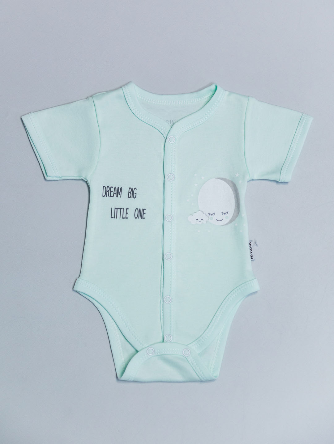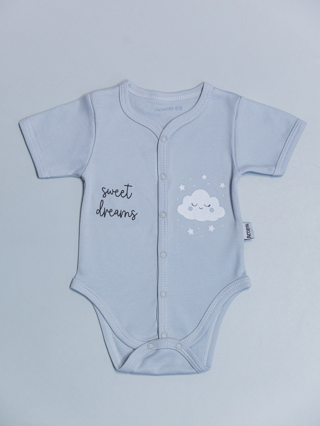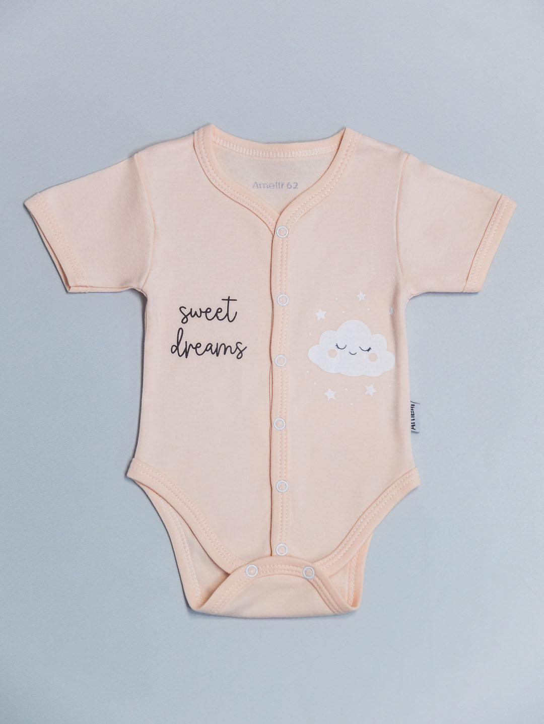 Боди Р62-80 с застёжкой в середине на кнопках, короткий рукав с бейкой по краю.