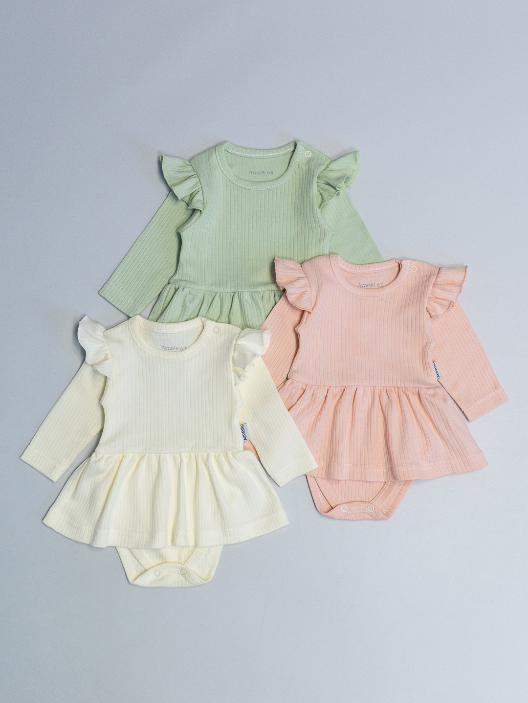 Боди-платье p62-80 с длинными рукавами,с крылышками ,кнопками на плече,
