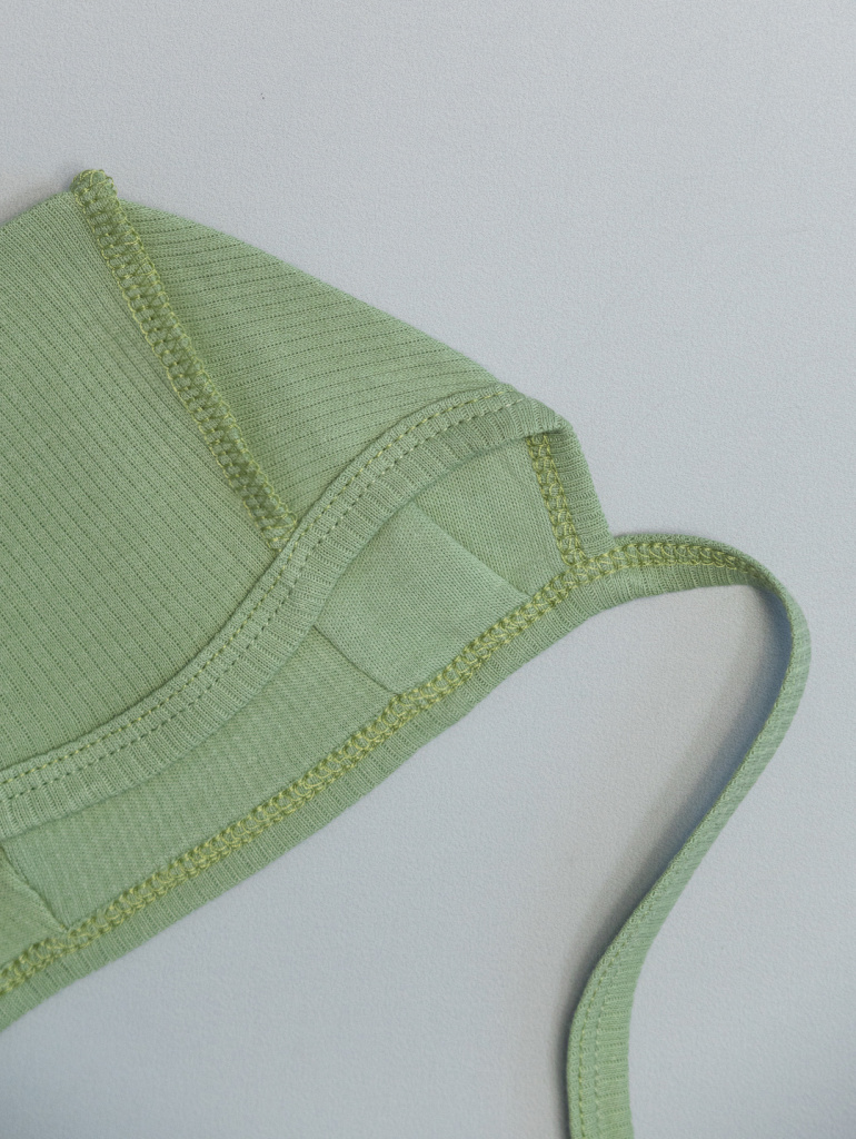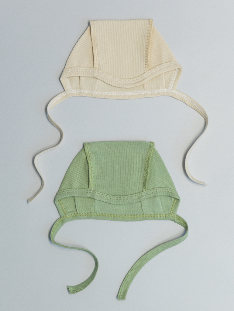 Чепчик с чентральной частью и двумя боковыми с завязками из бейки. Р36-40