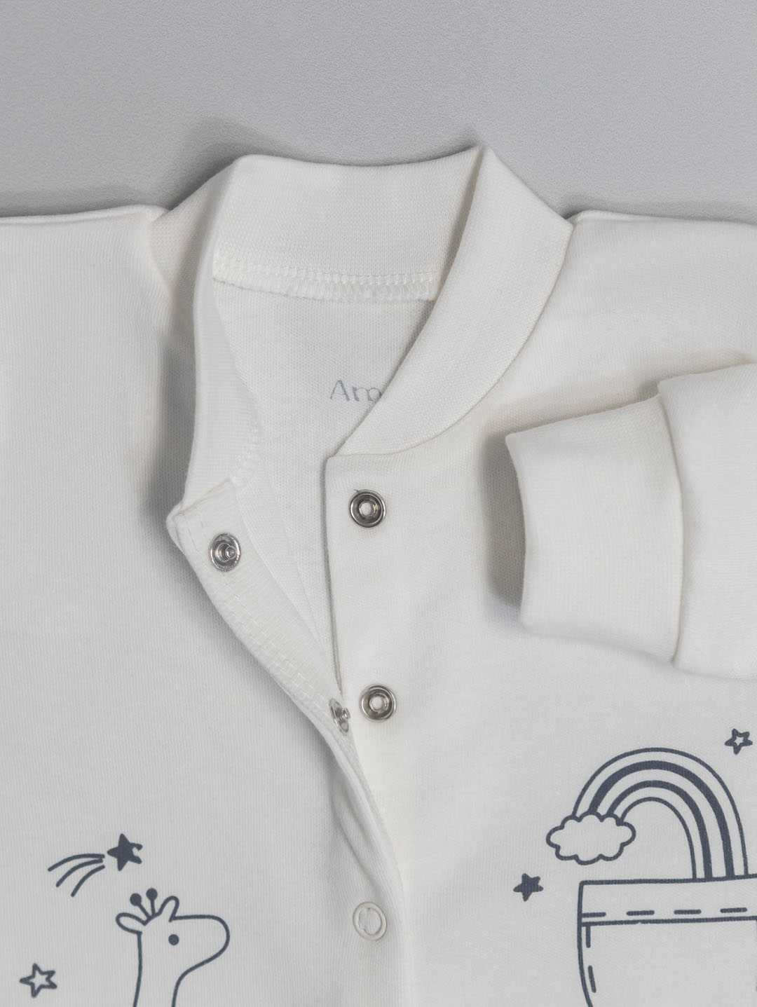 Комбинезон с круговой окантовкой, с воротником-стойкой , манжетами на рукавах и ножках р 62-80