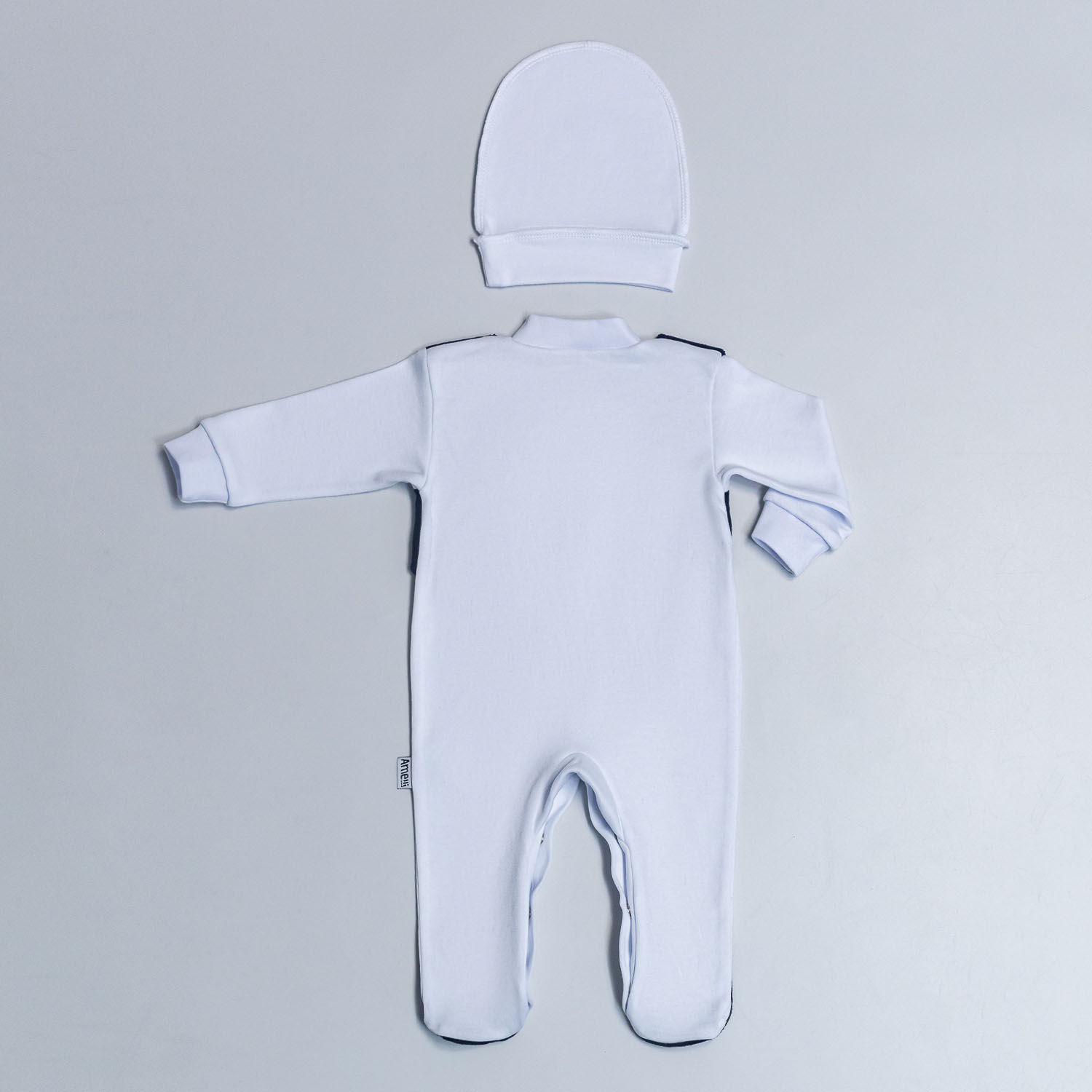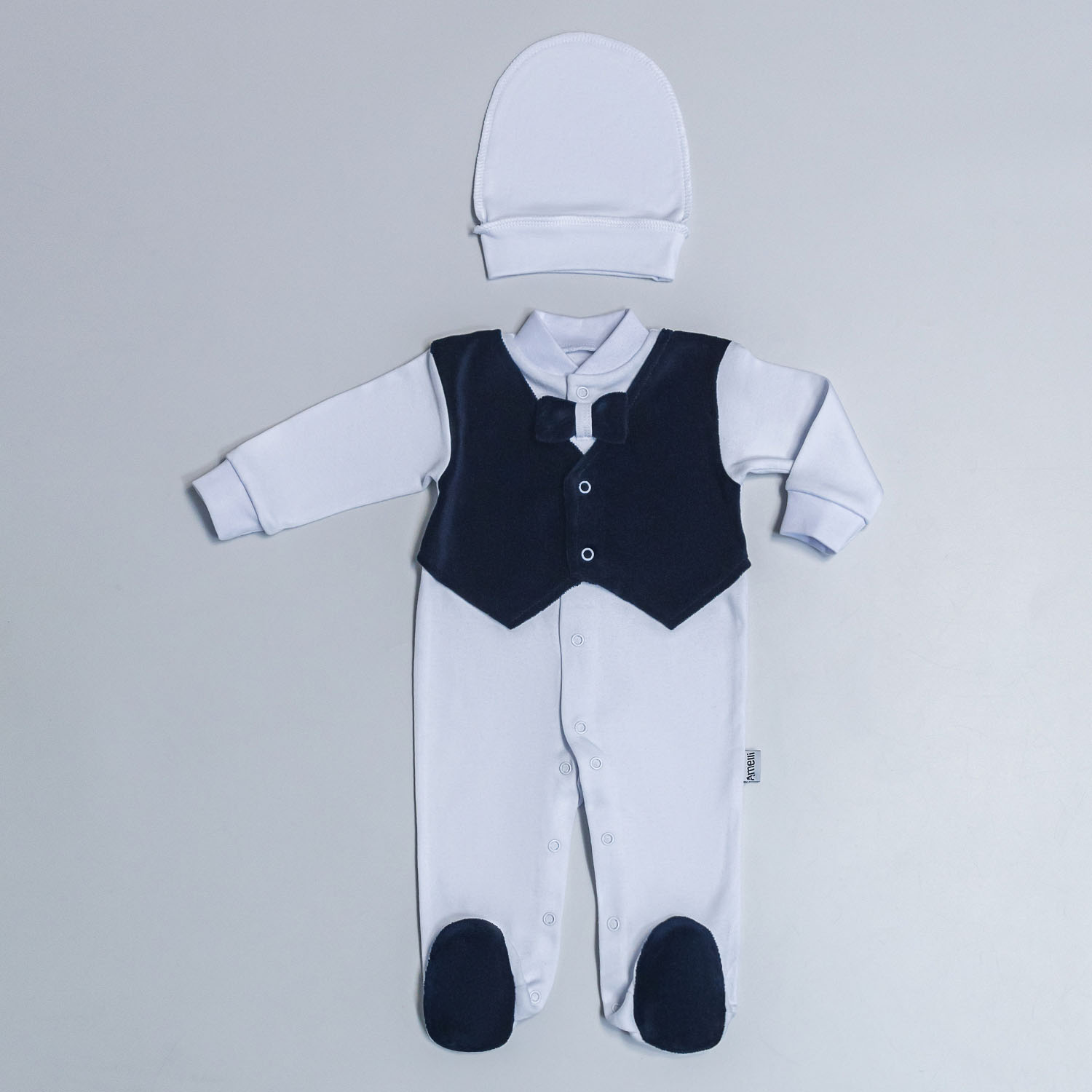 Комплект на выписку: Комбинезон с декоративным жилетом и бантиком из велюра( морская волна)+ шапочка (001.032) Р56,62