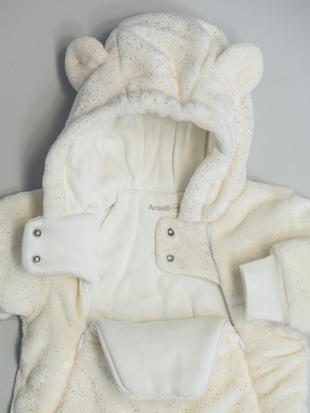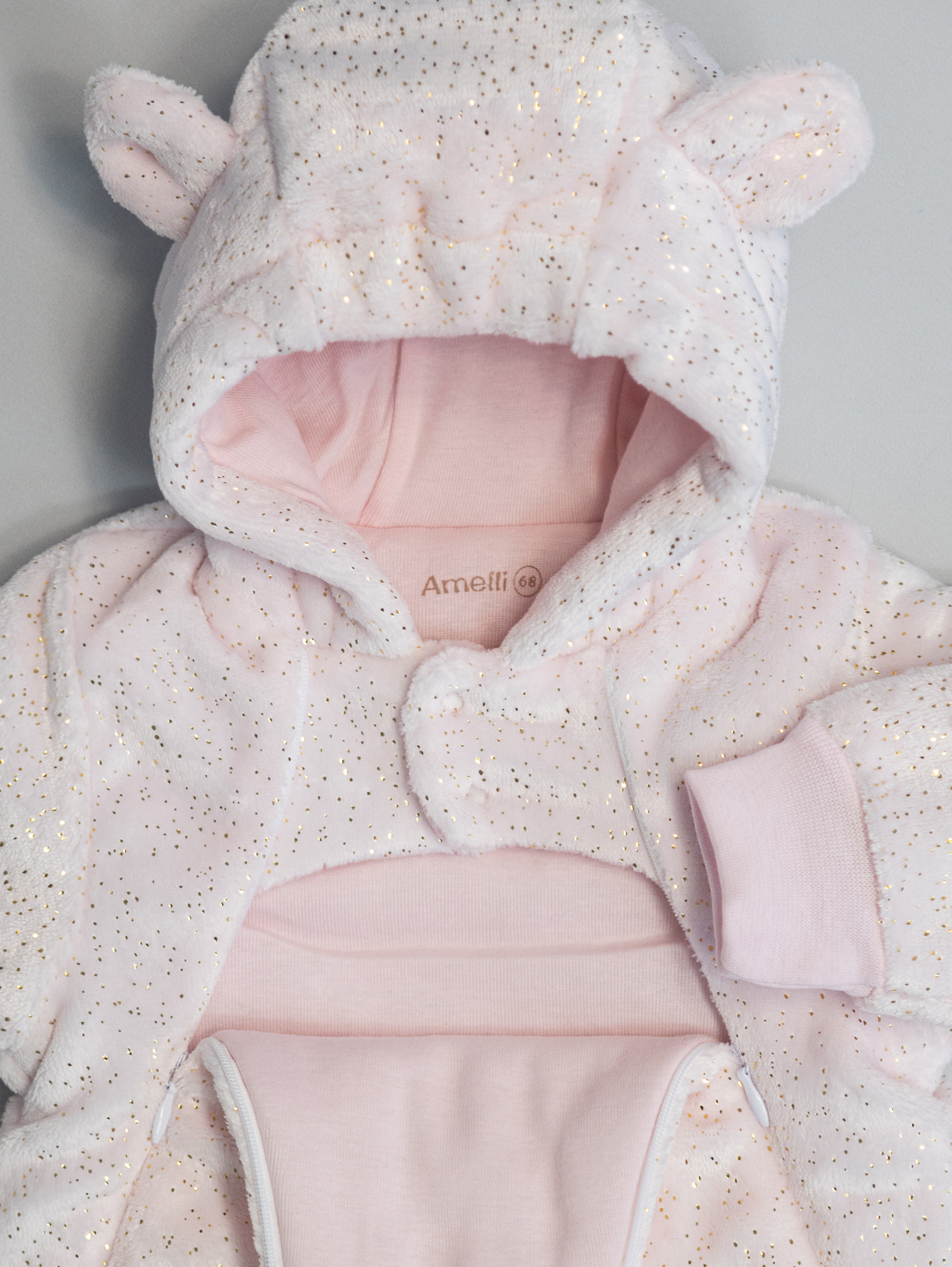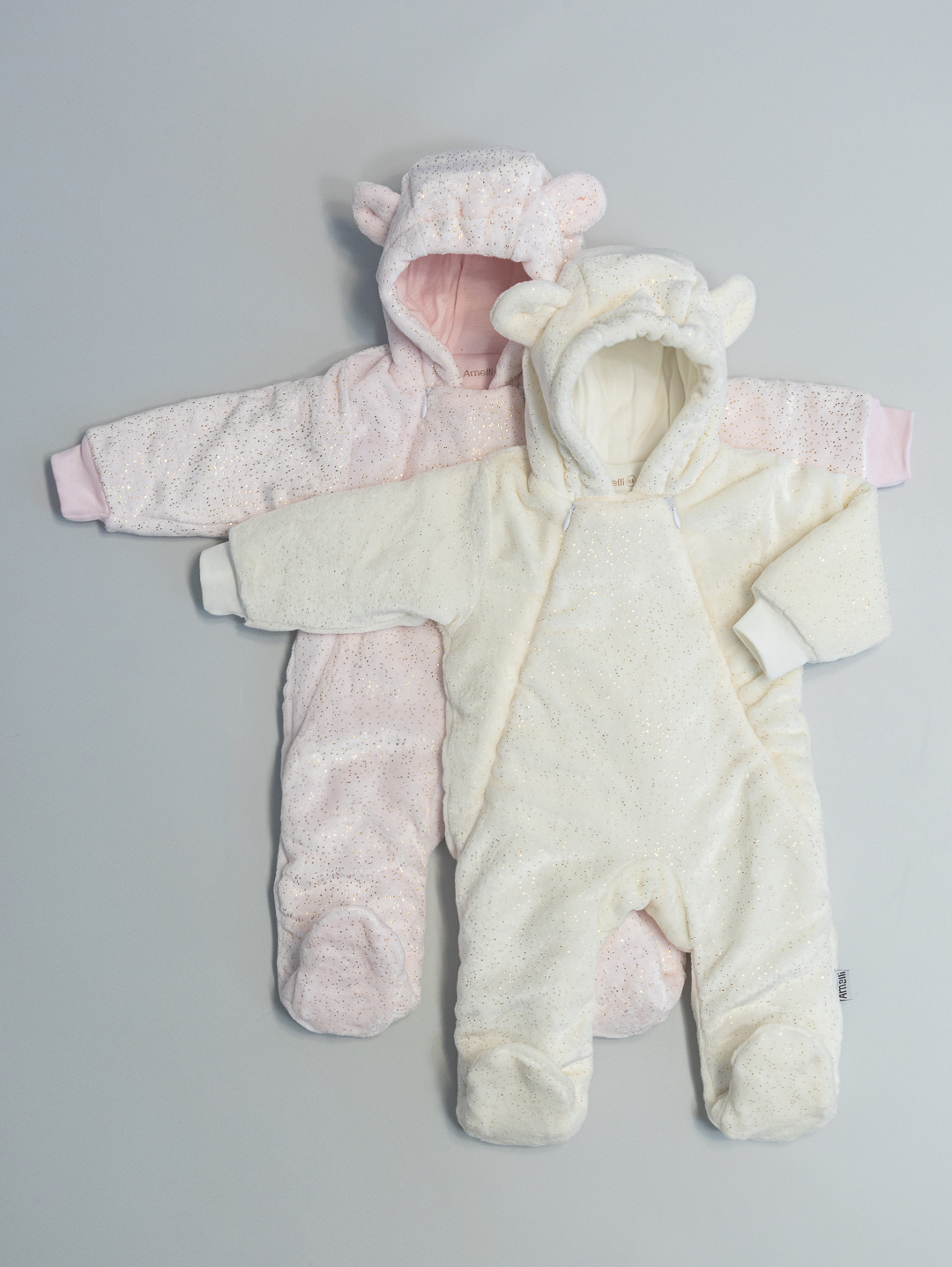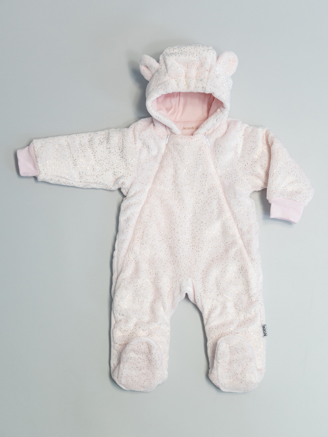 Комбинезон Р62-74 на синтепоне с закрытыми ножками,с капюшоном и декаративными заячьими ушками, застежкой на две молнии