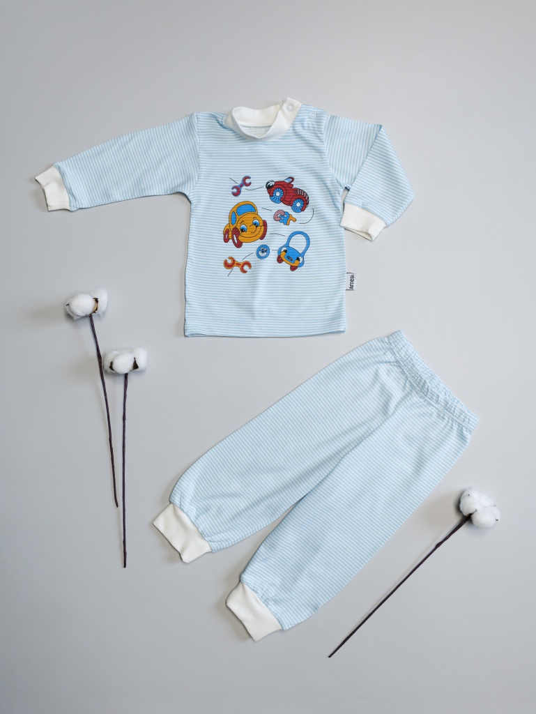 Комплект Толстовка на двух кнопках в плече +брюки с широкой пришивной резинкой в пояснице и манжетами на ножках.Р68-92