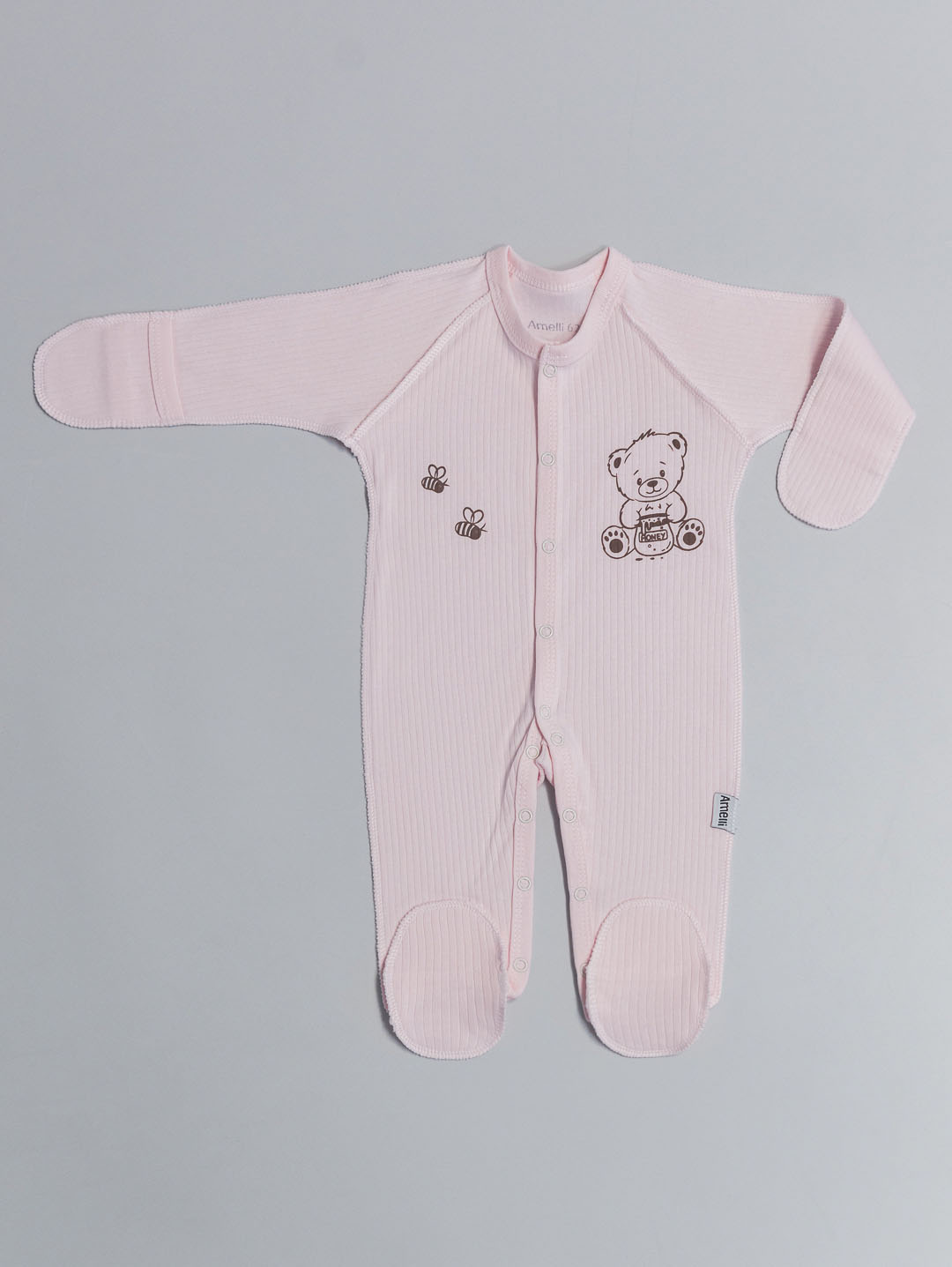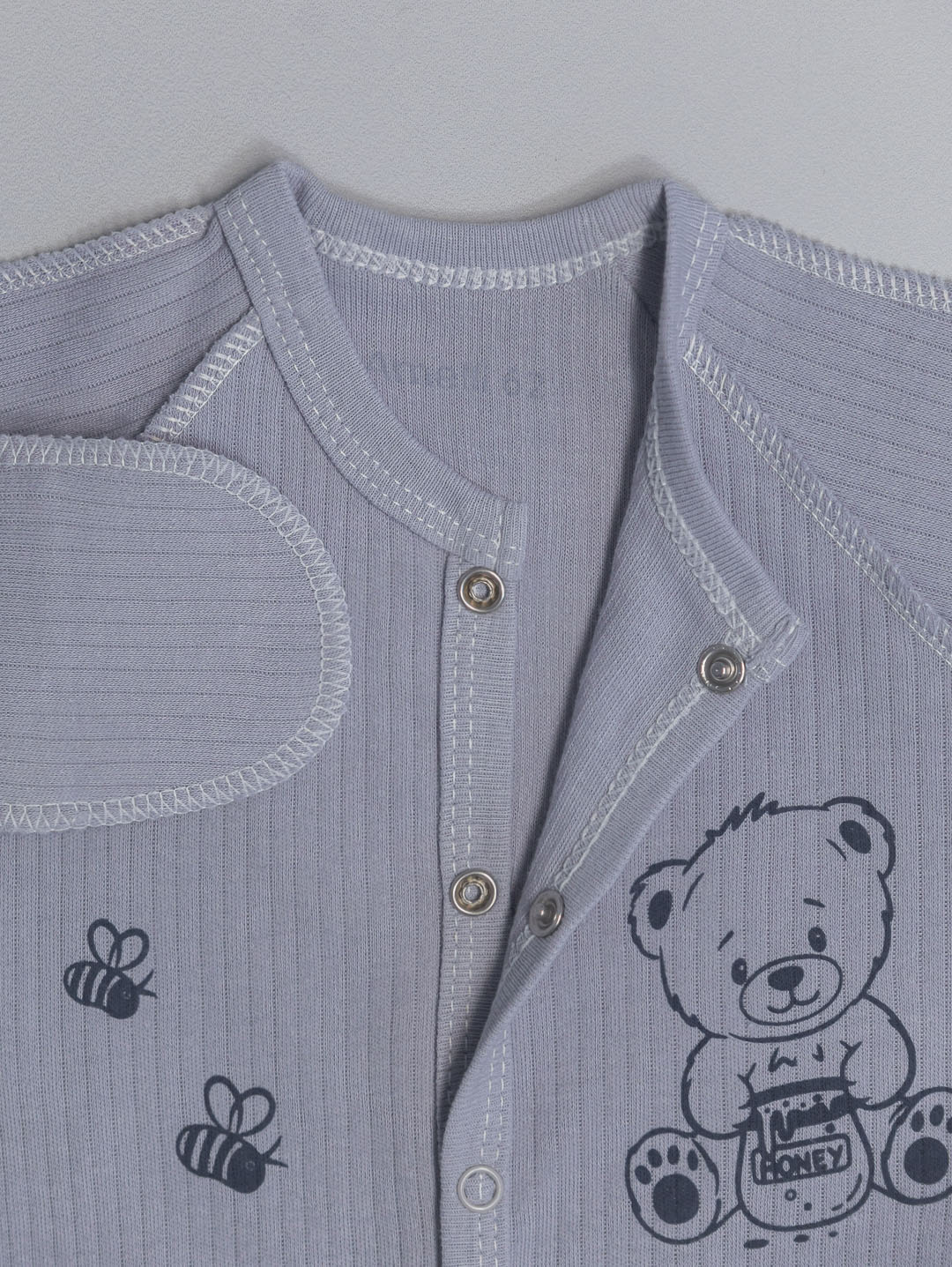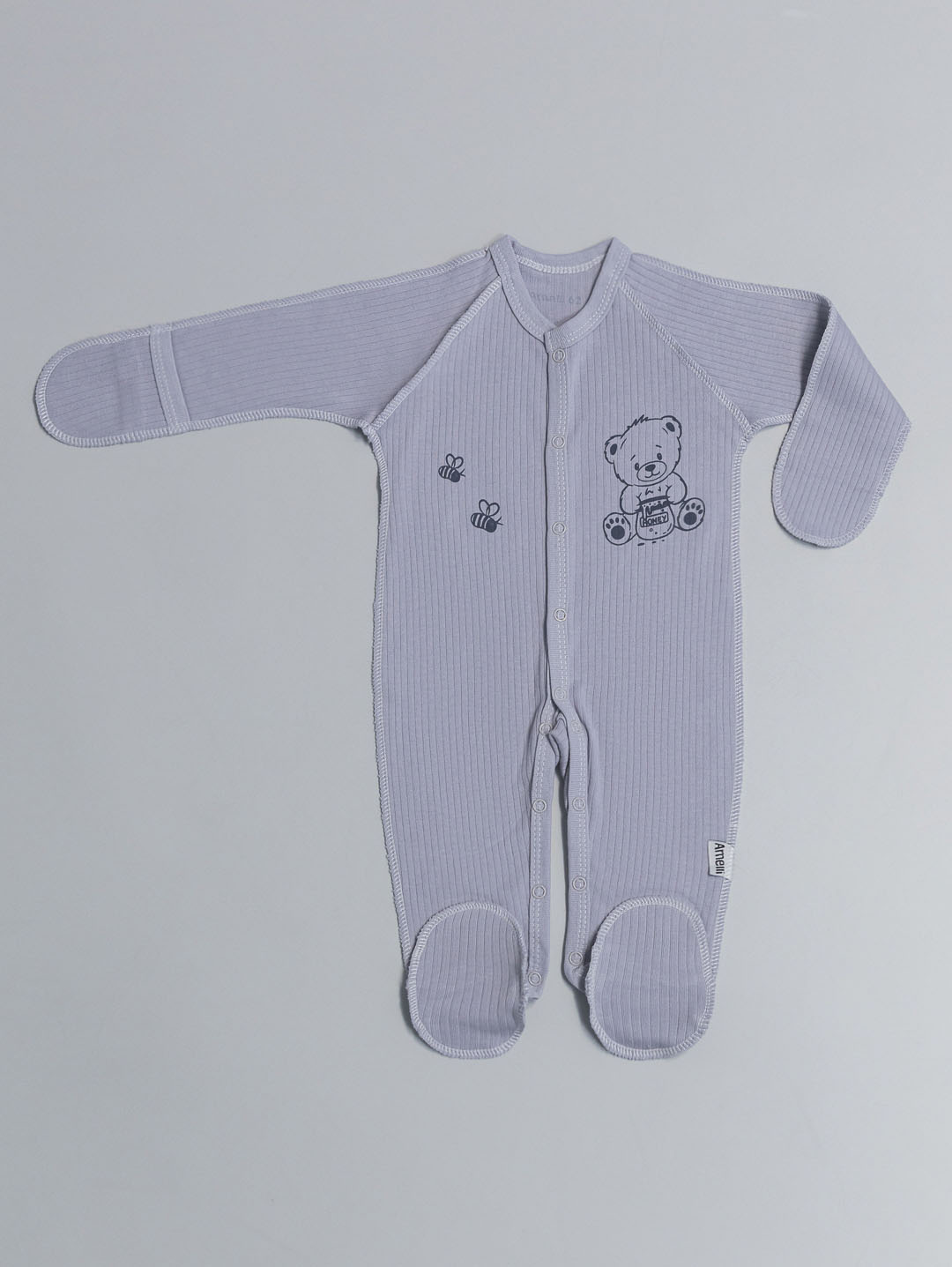 Комбинезон с наружными швами Р56-62 с закрытыми ножками,распашными полочками, рукавами реглан,царапками и ножками на кнопках