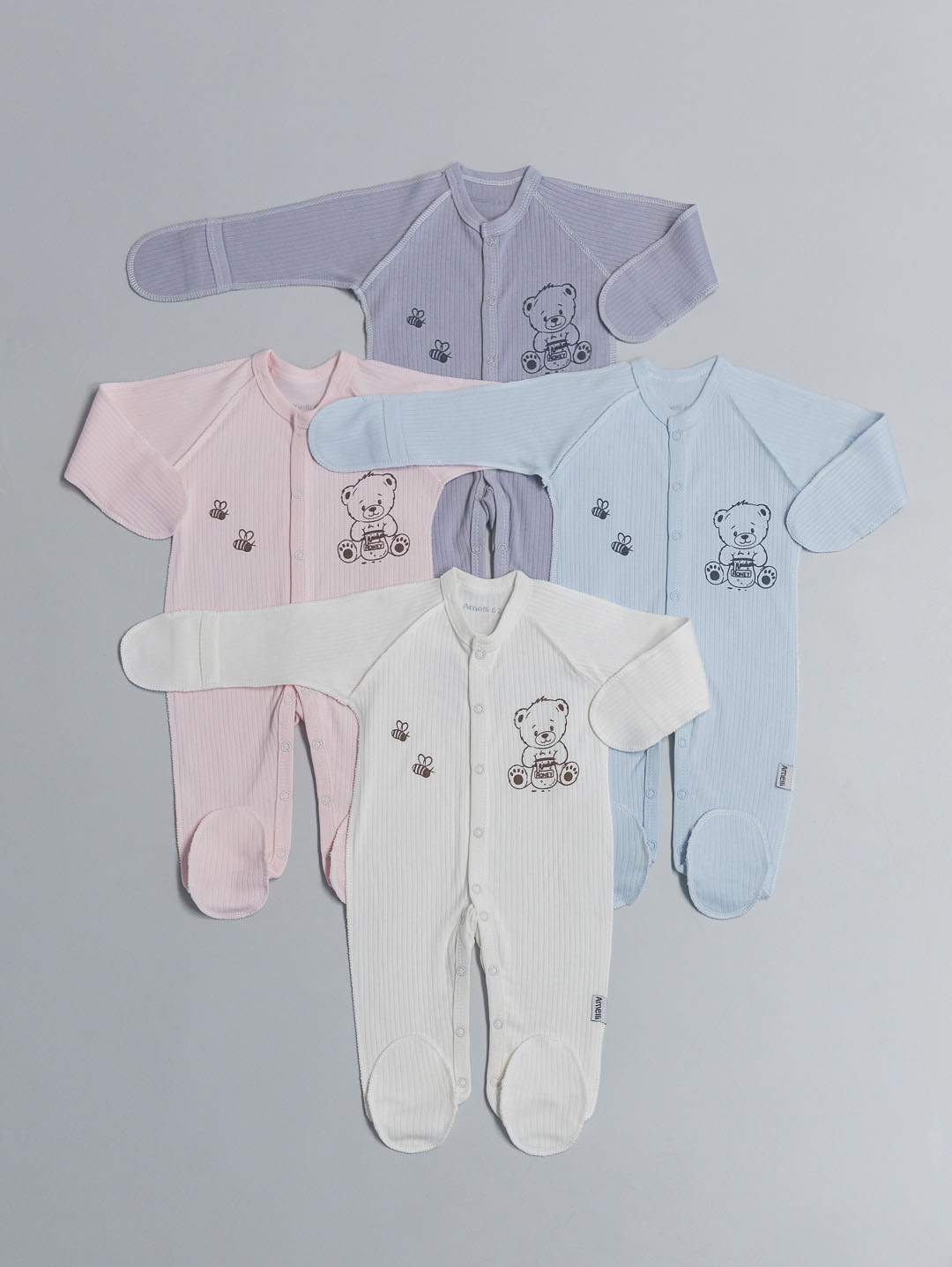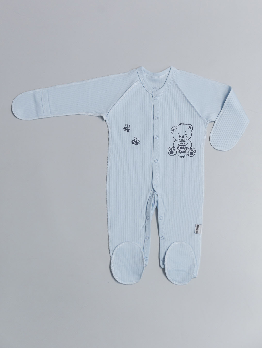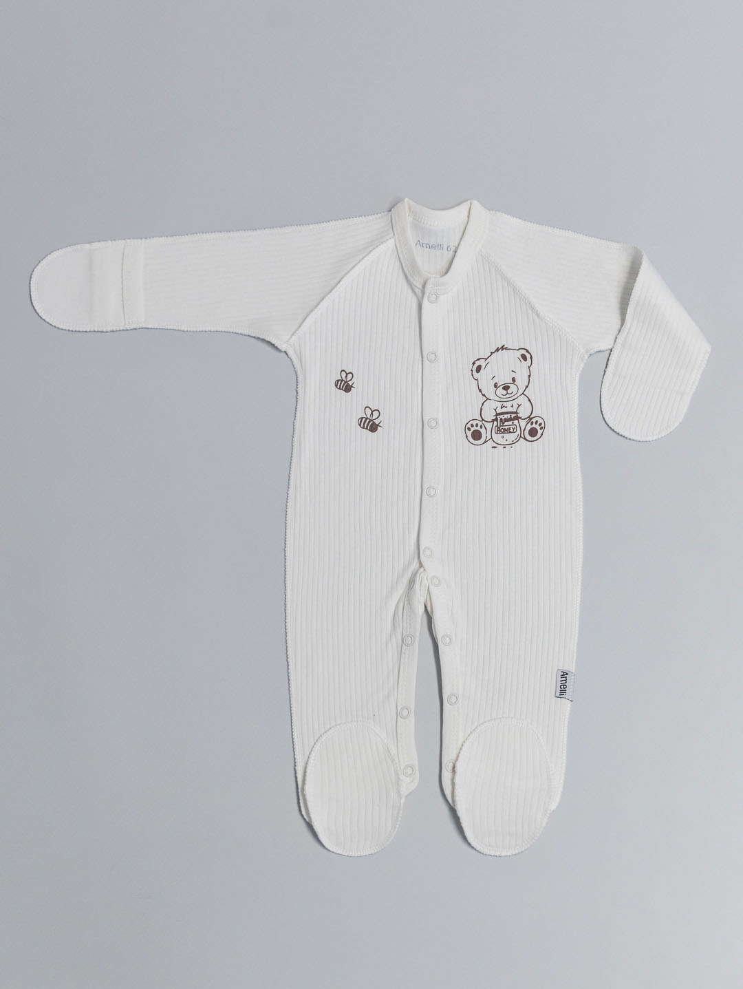 Комбинезон с наружными швами Р56-62 с закрытыми ножками,распашными полочками, рукавами реглан,царапками и ножками на кнопках