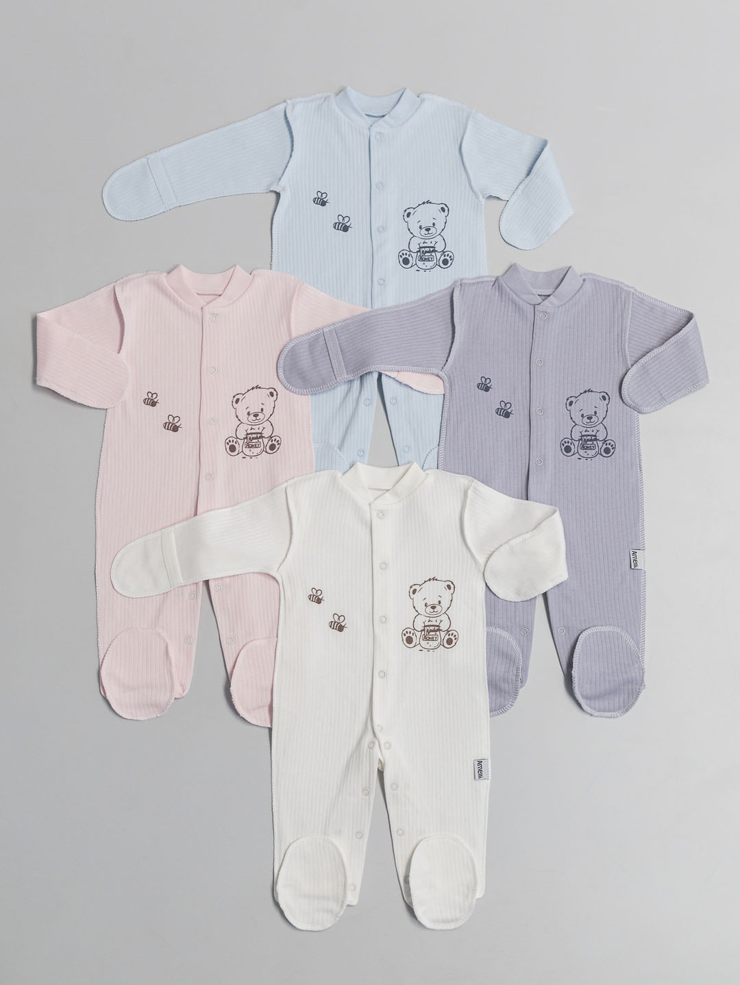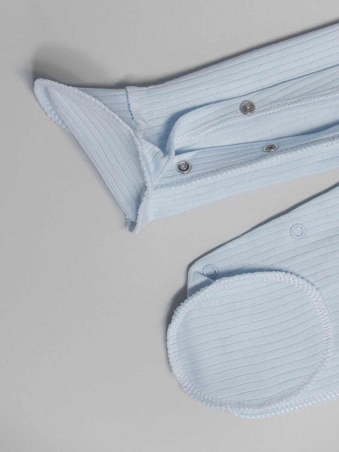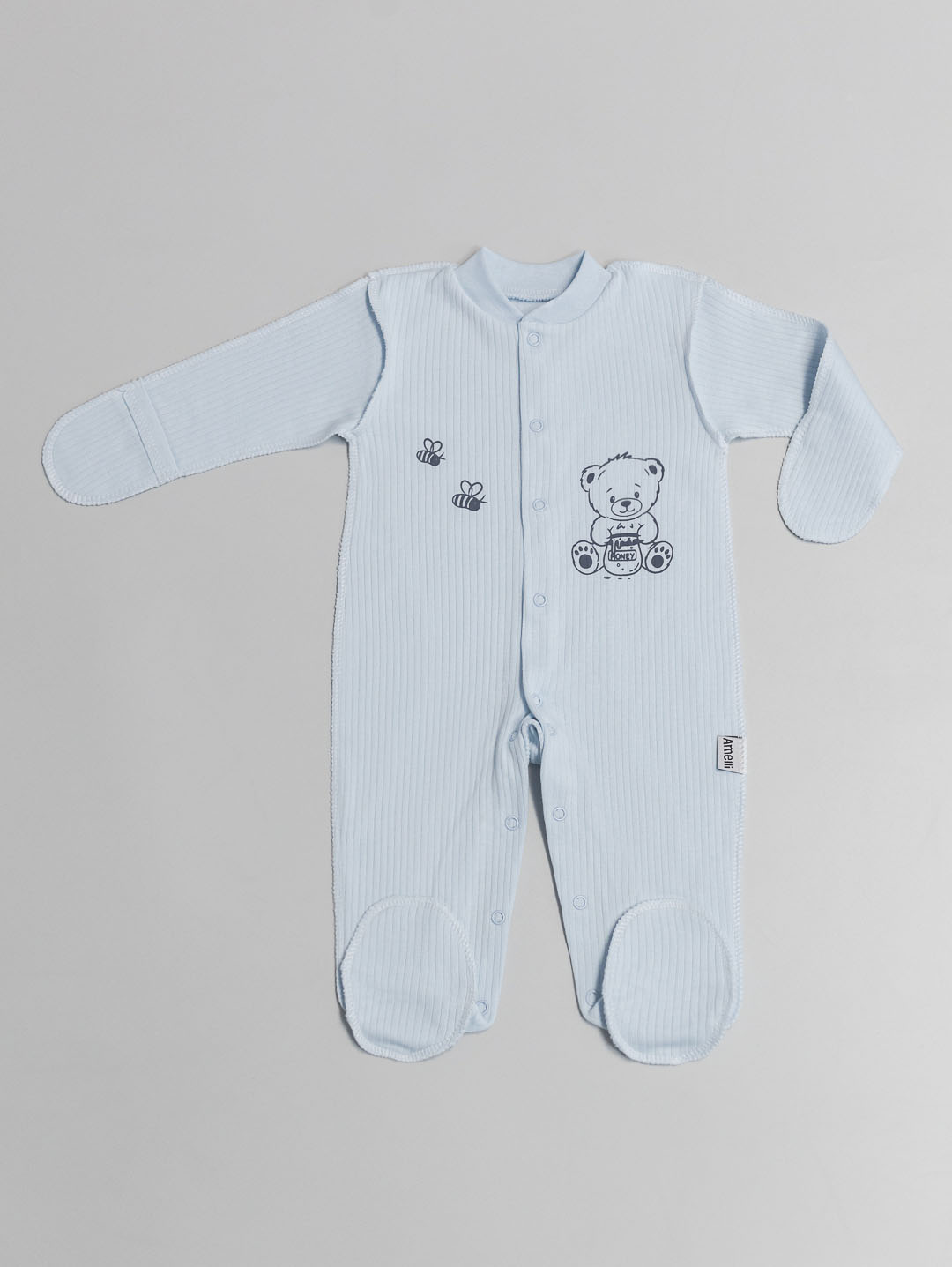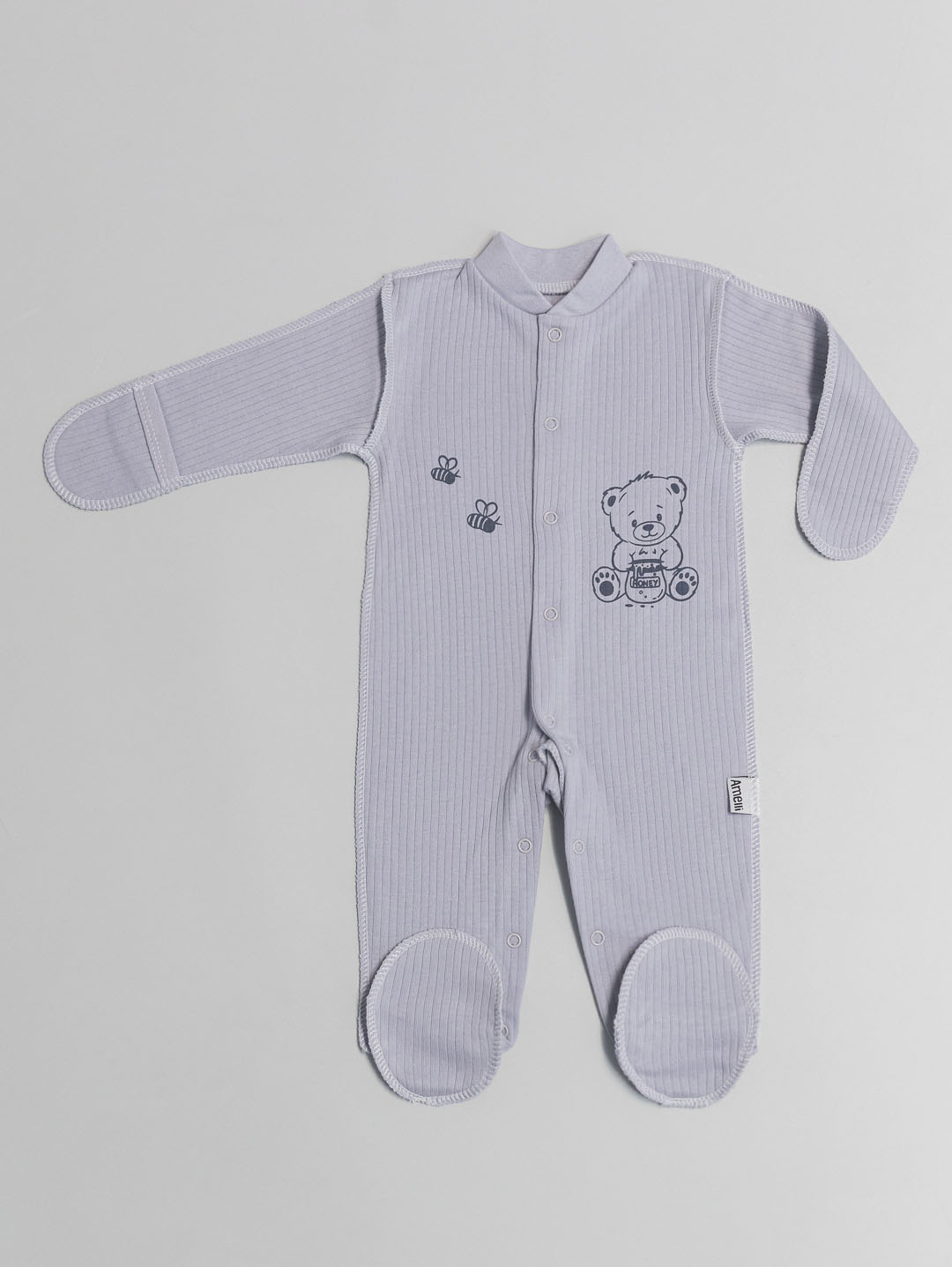 Комбинезон Р56-62 длинными рукавами с круглыми царапками на бейке, закрытыми ножками на центральной застёжке и воротником-стойкой